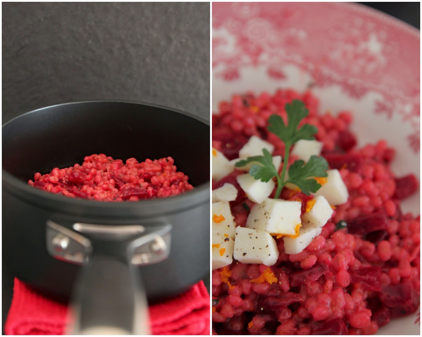 Apesar de nos últimos dias a Primavera ter resolvido aparecer, a verdade é que ainda a semana passada andávamos a tiritar (eu, pelo menos, porque sou muito, mas mesmo muito friorenta), e o que apetecia eram pratos quentes e reconfortantes, como este 'cevadotto' de beterraba e laranja.